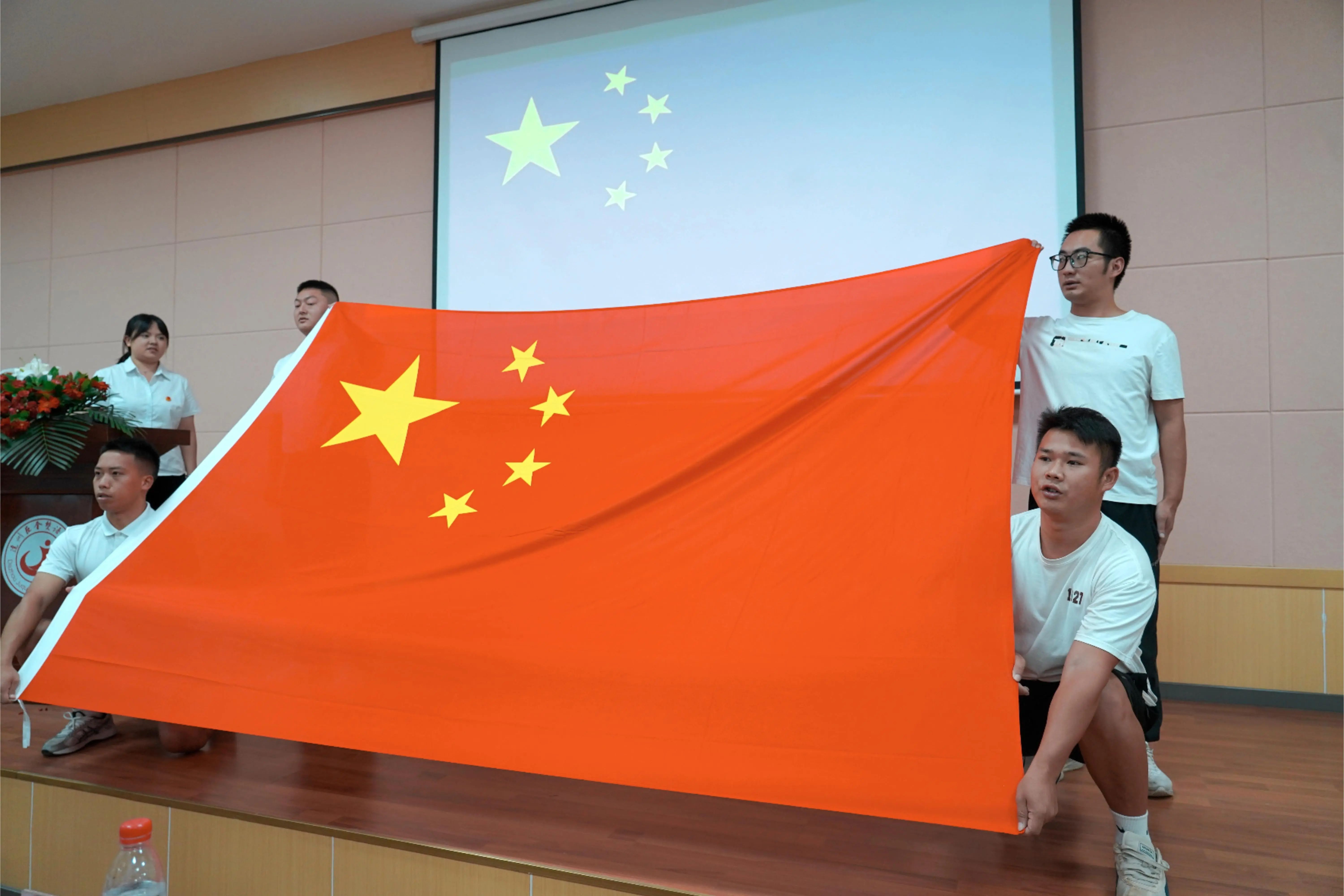 随着雄壮的国歌声响起,庆祝活动的序幕缓缓拉开。全校教职工肃立,共同高唱国歌,那激昂的旋律中,凝聚着对祖国的无限热爱和对教育事业的坚定忠诚。