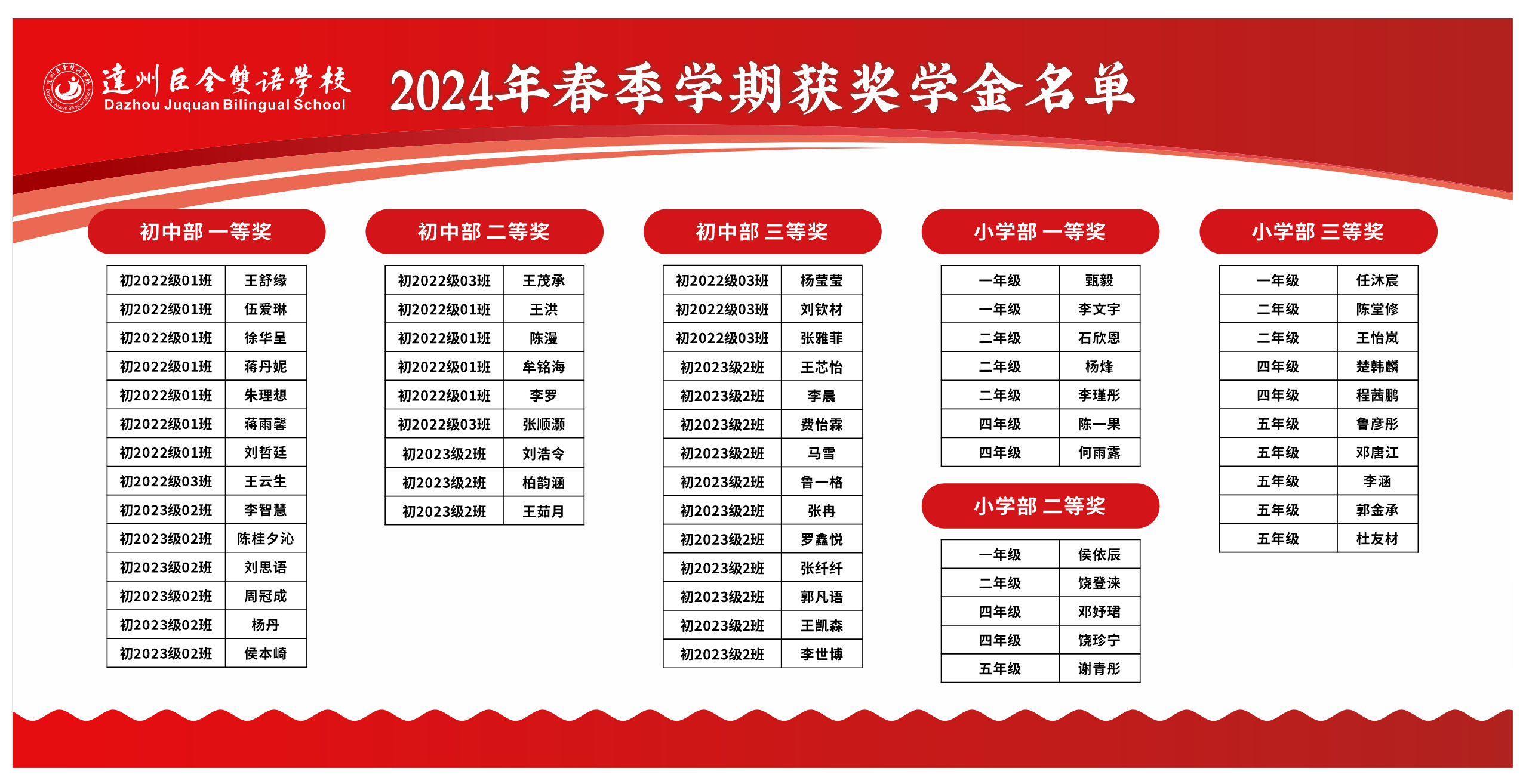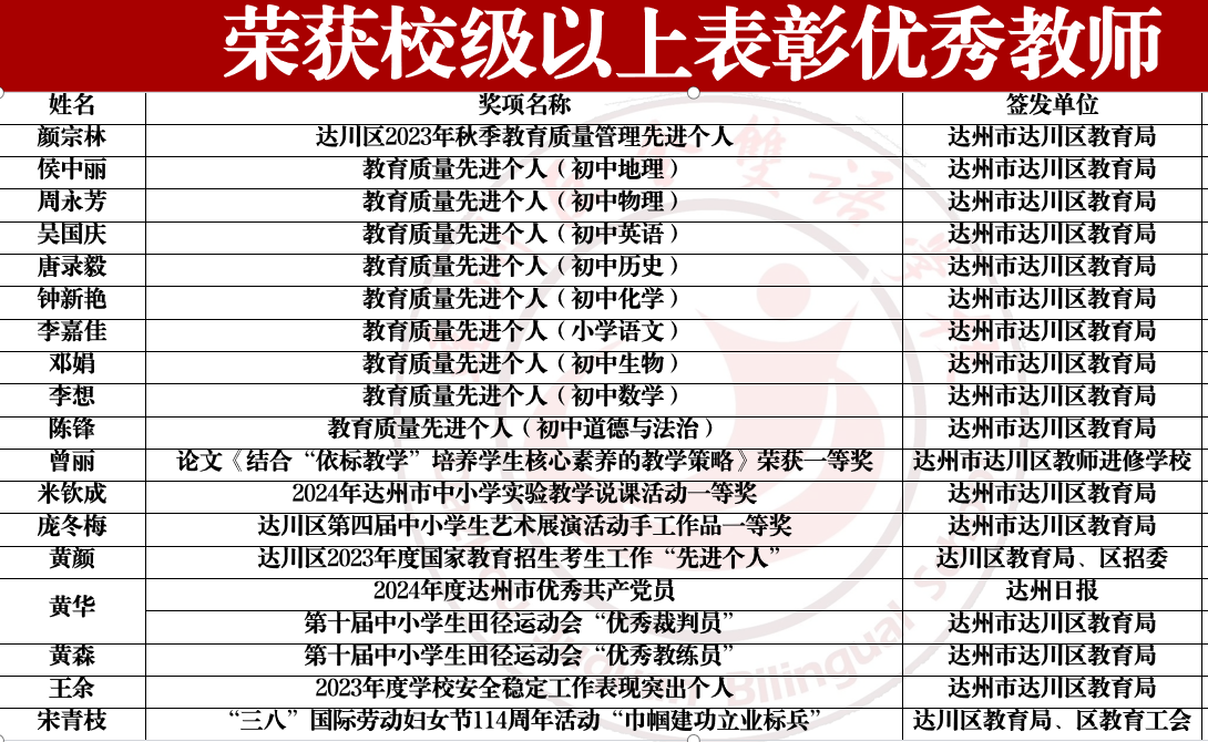 2024年春季学期初中部获奖名单公示