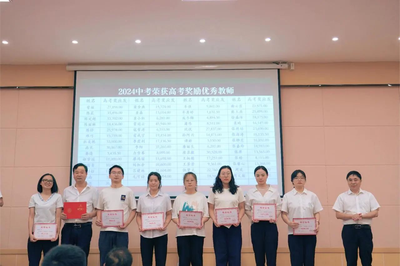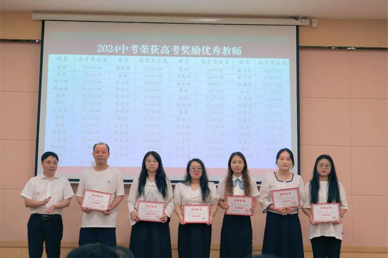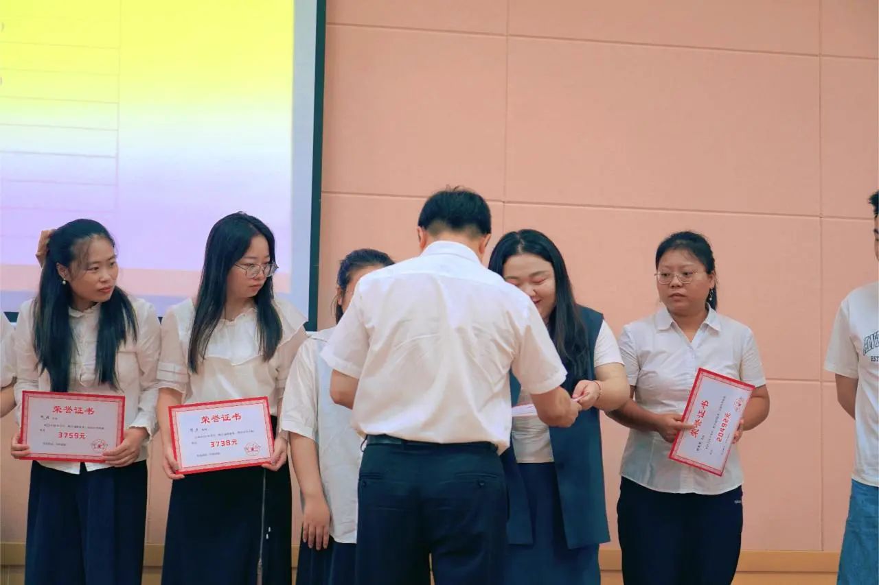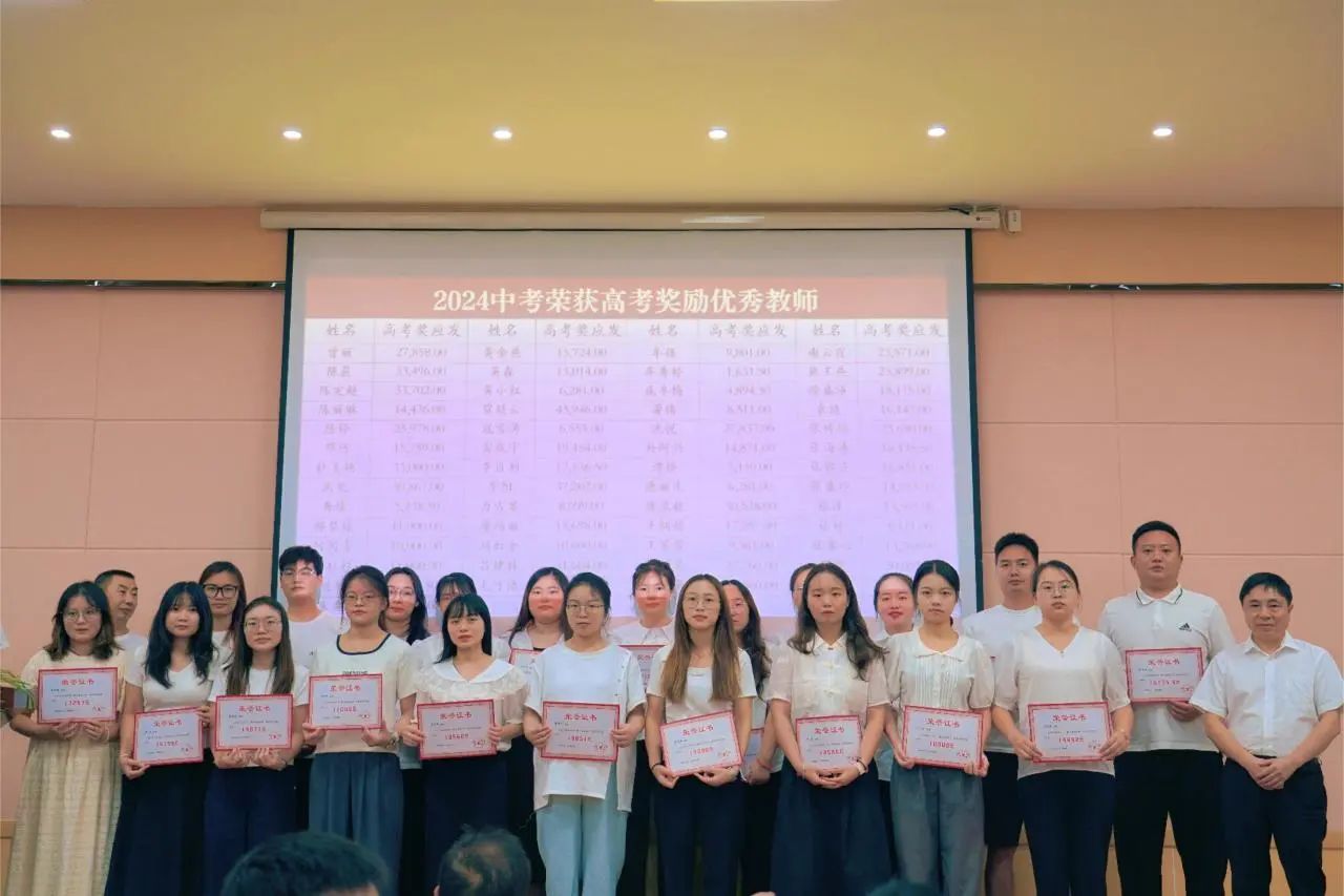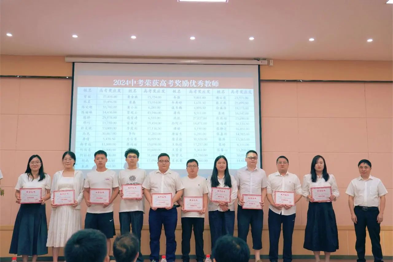 2024年春季学期在教育教学、后勤服务各岗位上涌现出一大批优秀教师和职工。蒋文印理事长、王亚西校长、王斌书记、颜宗林校长等学校领导分别为获得“后勤服务明星”、“爱生如子”、“事无巨细”、“激情励志班主任”、“鸿雁奖”、“教学成绩突出”、“校级以上荣誉”以及“中高考奖励”的优秀教师颁奖。本次教师节表彰共计发放奖金110万左右,这不仅是对他们卓越贡献的认可,更是对全体教职工的激励与鼓舞。