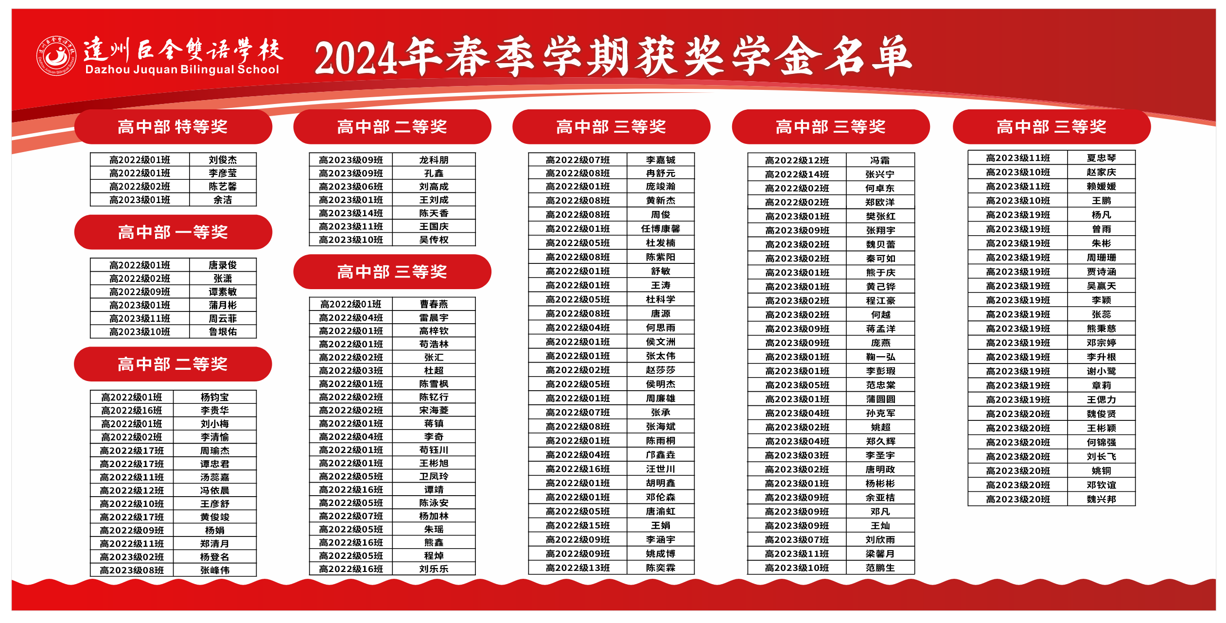 2024年春季学期高中部获奖名单公示