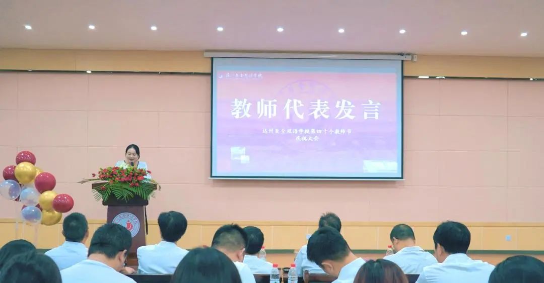 教师代表沈悦在发言中表示:作为教师,将始终铭记教育家精神,以满腔的热情和不懈的努力,为教育事业贡献自己的力量。